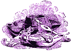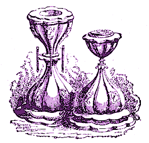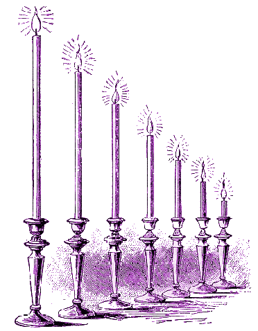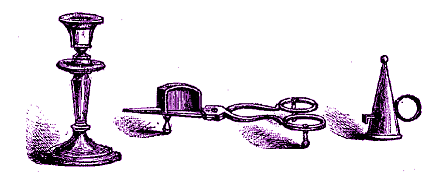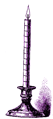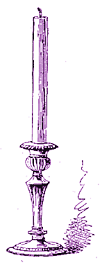![]() In Chaucer's England one hears little of candles; but in the list of articles of a manor-house of the time we read of "an iron or lantern candlestick," meaning, we suppose, an iron candlestick covered with brass, or a brass candlestick. Ancient candlesticks, such as we are able to set before you, were more solid than elegant, and look as if they might have been copied from an hour-glass. After long research in olden history for some hints about candles, a friend, who noticed our failure, suggested that we should search through a History of Greece; but we did not give him a fig, much less a groat, for his puny wit. Of old, the Shunammitish woman, who had a prophet's chamber, had provided a candlestick for the man of God; but far nearer our own day a domestic candlestick seems to have been a rare thing in this country. Until windows were supplied with glass, naked candles must have been too liable to be blown out to be used without lanterns. Moreover, we suspect that our fathers were not so apt to turn night into day as we are, but went to bed with the lamb, and rose with the lark. They lost somewhat by this habit; but possibly they gained more. The curfew, which put out all lights at an early hour, has been represented as an instrument of tyranny; but in all probability it was a needful social regulation to prevent the frequent fires which fell out in wooden houses, where the floor was covered with rushes, and candles were apt to be carelessly used. On the whole, we do not weep very bitterly over "the good old times", when we sit at ease far into the night, and read by the electric light. The making of lanterns would seem to have been a flourishing trade in the olden time. Many were made of horn; but we have seen an engraving in which tin or thin iron would seem to be largely used.![]() Excommunications were pronounced by "Bell, book, and candle." After the formula had been read, and the book closed, the assistants cast the lighted candles, they held in their hands, to the ground, so as to extinguish them, and the bells were clashed without order: the last two ceremonies symbolized the quenching of grace, and the disorder in the souls of the persons excommunicated. Now we understand why