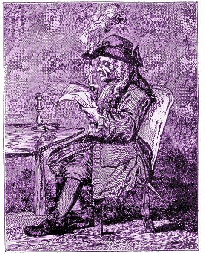 On a theme so sublime, ![]() We must not fail to mention Hogarth's famous drawing of The Politician. That admirable publication, The Penny Magazine in the year 1834, had such an excellent exposition of the picture, that I cannot forbear to quote it in full. "This piece of exquisite humour, is said to have been suggested to Hogarth by a living and well-known character in his day, a Mr. Tibson, laceman in the Strand, who preferred politics to trade, and the Gazetteer newspaper to the ledger and day-book. Never was a ruling passionan intentness on a favourite subjectmore happily portrayed than in the print before us. The mere position or seat of the old quidnunc tells a story! From the way in which he has squared himself in his chair, you may see he is a man determined not to budge until he has conned his dear paper through to the last line, word, and syllable. His short, stout legs, with those broad bases of high-quartered shoes, are set down on the floor like pillars! It would require a dray-horse to drag him from his occupation! "To throw a full, clear light on his sheet (the only sheet, we may be sure, he ever reads), he has taken his tallow candle from its socket, and, indifferent to the abomination of grease, holds it in his right hand, whilst his left hand grasps his journalthe Benjamin of his heart. "The ascending flame has set fire to his hat, has literally burnt a hole through its broad brim. The candle has also fearfully burnt down and has guttered; the red-hot wick and the base of the flame are within the eighth of an inch of his finger, and it is difficult to say which part of him will be burnt first, his forehead, his nose, or his unflinching hand. But what of that? He is rapt, and altogether unconscious of his danger, and on he will read until the fire reaches him. Look at his countenance the while! with its deep lines of thought, and the half acute and half solemn compression of his lips! There is many a siege and blockade in the dropping corner of that mouth, and a campaign or a treaty in every wrinkle of that face! * * * "Thanks to the introduction of narrow-brimmed hats, there is now no danger of our quidnuncs setting fire to their beavers. Their heads, indeed, are sometimes heated by flaming paragraphs; but the heat is all inward. There are political occasions on which the people have to think and to act, as far as they can act legally; but the only way to think and to act rightly is to be cool, and not set their hats or their heads on fire." In the days of the great Napoleon the rage of English people against Boney knew no bounds. Woodward designed a cartoon entitled "The Corsican Moth", which flying towards the candle is made to say, "It is a very fierce flame; I am afraid I shall singe my wings!" Old George III., just below the candlestick, is muttering "Thou little contemptible insect, I shall see thee consumed by-and-by!" We are glad that no such irrational hate now stirs our population with enmity to France. There is no need for me to moralize upon the moth and the candle; yet it were well if some who have been already injured by vicious courses could have the sense to shun those evils which have already wrought them so much ill. It brings us back to the dark ages, when we find that, so late as 1836, His Majesty William IV. was dependent upon wax candles for the due delivery of his speech to Parliament. I will give you the passage: