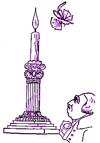![]() This lecture of mine has proved a boon to several other public instructors, who have largely used it, and possibly have improved upon the original. I am sure they have not been more free than welcome. As I have taken out no letters-patent, I have never called upon them for a royalty for the use of my invention. Still, if their consciences trouble them, I am like Matthew, "at the receipt of custom." I have now resolved to print my lecture; and I hope those gentlemen will not be angry with me for stopping their borrowing, but the rather I trust they will think me generous for having refrained from publishing the lecture for so long a period as five-and-twenty years. These candles have now become "ancient lights", but I do not propose to prevent anybody's building near the premises; for they will not block up my light. These symbols have light in themselves which cannot be hid. My friends can go on delivering their own versions all the same; and if they think fit, they may use the original text also. A man who would deliver the lecture, and sell the book at the close, might drive a good trade. In any case, the subject admits of further variations, and it can never be quite exhausted so long as lecturers have brains, and lectured ones have eyes.![]() Candles were far more familiar objects in my boyhood than in these days of gas and electricity. Now, fathers show their boys and girls how to make gas at the end of a tobacco pipe; but in my time the greatest of wonders was a lucifer-match. Our lights were so few that they justified the wit who declared that the word "luxury" was derived from lux, the Latin for light. Assuredly, a good light is a high form of luxury. I can never forget the rushlight, which dimly illuminated the sitting-room of the old house; nor the dips, which were pretty fair when there were not too many of them to the pound; nor the mould candles, which came out only when there was a party, or some specific personage was expected. Short sixes were very respectable specimens of household lights. Composites have never seemed to me to be so good as the old sort, made of pure tallow; but I dare say I may be wrong. Nevertheless, I have no liking for composites in theology, but prefer the genuine article without compromise. Once I thoughtlessly hung a pound of tallow candles on a clothes-horse. This construction was moved near the fire, and the result was a mass of fat on the floor, and the cottons of the candles almost divested of tallow: a lesson to us all not to expose certain things to a great heat, lest we dissolve them. I fear that many a man's good resolutions only need the ordinary fire of daily life to make them melt away. So, too, with fine professions, and the boastings of perfection which abound in this age of shams. The candle with a rush wick was the poor man's friend. Thrifty labourers' wives made them themselves; and White, in his Selborne, has a letter which gives quite an elaborate account of this economical home manufacture. Good housewives saved the skimmings of the bacon pot, precipitated the salt, and then put a little wax from their bee-hives into the grease. The rushes were gathered in summer, and steeped in water, the rinds removed, and the pith preserved entire. To dip the rushes in the scalding fat required great care; but when the work was done, the labourer's house could be cheered in a small way with candle-light for 800 hours for three shillings. He adds that the very poor, who are always the worst economists, buy a half-penny candle every evening, and thus get only two hours' light for their money instead of eleven. Moral: there should be economy even in rushlights, how much more in consuming the light of life! In those days it was a youthful joke to send a boy to the shop for a pound of cotton rushes. The grocer, if of an angry sort, was apt to make a rush at the lad, who thus appeared to mock him. It was in these times that we heard the story of the keeper of the chandler's-shop, who told her customers that "candles was riz." "Riz", said her neighbour, "everything is riz except my wages. But why have they riz?" "They tell me ", said the other, "that tallow has gone up because of the war with Russia." "Well", replied the customer, "that is a queer story. Have they begun to fight by candle-light?" That woman had some inkling of the law of supply and demand. She may never have read Adam Smith, but it is possible that she was a Smith herself. Those were the days when a wit is represented as saying to his tradesman, "I hope these candles will be better than the last." "I am sure I don't know, sir; was anything the matter with those I sent you?" "Matter enough", replied the wit; "they burned very well till they were about half gone, and then they would burn no longer." The catch is that, of course, they burned shorter.![]() We had practical fun with candles, too; for we would scoop out a turnip, cut eyes and a nose in the rind, and then put a candle inside. This could be judiciously used to amuse, but it might also be injudiciously turned to purposes of alarming youngsters and greenhorns, who ran away, under the apprehension that a ghost was visible. Other things beside turnips can be used to frighten foolish people; but it is a shame to use the light of truth with such a design. I do not think I ever saw the smoke of a candle employed as Swift suggests, when he says to servants in general, "Write your own names and your sweethearts' with the smoke of a candle, on the roof of the kitchen or servants' hall, to show your learning;" but smudges caused by candle-snuffs were not unusual in slovenly rooms. No doubt the youths in my audience have found a candle helpful in astronomical observations, when they have smoked glass over a candle to use it in watching an eclipse. Many are the side uses of every useful article.![]() I have a distinct remembrance of a mission-room, where my father frequently preached, which was illuminated by candles in tin sconce