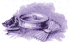 I found it very difficult to procure this ancient relic in London: indeed, I had to give up all idea of purchase, and this specimen was specially made to order. Be glad that now you have lucifers and vestas, to flame forth in an instant; for on a cold winter's morning it was tedious work to use this complicated instrumentality when it was in perfect condition, and many things might happen to make that condition imperfect, and render your labour fruitless. If you had the gout in your hand you could not strike the sparks; if the tinder was damp the sparks could not live; and if there happened to be no tinder, because you forgot to make it; or, if the matches were missing, you were done for. Three cheers for the good old times of tinder boxes; may they never come back!