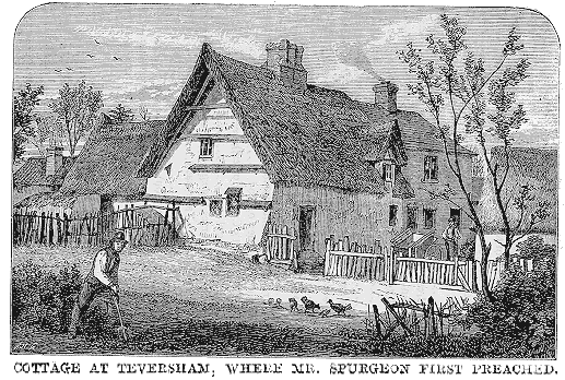 Our Sunday-school work was over, and tea had been taken, and we set off through Barnwell, and away along the Newmarket-road, with a gentleman some few years our senior. We talked of good things, and at last we expressed our hope that he would feel the presence of God while preaching. He seemed to start, and assured us that he had never preached in his life, and could not attempt such a thing: he was looking to his young friend, Mr. Spurgeon, for that. This was a new view of the situation, and I could only reply that I was no minister, and that even if I had been I was quite unprepared. My companion only repeated that he, even in a more emphatic sense, was not a preacher, that he would help me in any other part of the service, but that there would be no sermon unless I gave them one. He told me that if I repeated one of my Sunday-school addresses it would just suit the poor people, and would probably give them more satisfaction than the studied sermon of a learned divine. I felt that I was fairly committed to do my best. I walked along quietly, lifting up my soul to God, and it seemed to me that I could surely tell a few poor cottagers of the sweetness and love of Jesus, for I felt them in my own soul. Praying for divine help, I resolved to make an attempt. My text should be, "Unto you therefore which believe he is precious,"* and I would trust the Lord to open my mouth in honor of his dear Son. It seemed a great risk and a serious trial, but, depending upon the power of the Holy Ghost, I would at least tell out the story of the cross, and not allow the people to go home without a word. We entered the low-pitched room of the thatched cottage, where a few simple-minded farm-laborers and their wives were gathered together; we sang and prayed and read the Scriptures, and then came our first sermon. How long or how short it was we cannot now remember. It was not half such a task as we had feared it would be, but we were glad to see our way to a fair conclusion, and to the giving out of the last hymn. To our own delight we had not broken down, nor stopped short in the middle, nor been destitute of ideas, and the desired haven was in view. We made a finish, and took up the book, but to our astonishment an aged voice cried out, "Bless your dear heart, how old are you?" Our very solemn reply was," You must wait till the service is over before making any such enquiries. Let us now sing." We did sing, and the young preacher pronounced the benediction, and then began a dialogue which enlarged into a warm, friendly talk, in which everybody appeared to take part. "How old are you?" was the leading question. "I am under sixty," was the reply. "Yes, and under sixteen," was the old lady's rejoinder. "Never mind my age, think of the Lord Jesus and his preciousness," was all that I could say, after promising to come again, if the gentlemen at Cambridge thought me fit to do so. Very great and profound was our awe of those "gentlemen at Cambridge" in those days.